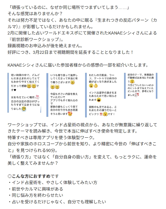 「前世カルマ診断ワークショップ」ですが、